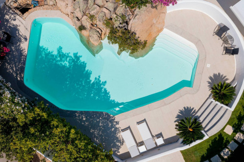 La Piscina: Un'Opera d'Arte NaturaleCollegata al soggiorno principale, una delle zone più affascinanti della Villa è un ulteriore soggiorno che si apre direttamente sulla piscina. Quest'area esterna è il punto di incontro tra il design raffinato e la natura circostante, offrendo un'ulteriore zona di relax e svago. La piscina è unica nel suo genere, con un monolite di pietra locale incastonato al suo interno, un'opera d'arte che richiama le tradizioni sarde e arricchisce l'atmosfera dell'intera proprietà. L'esposizione della piscina è ideale, offrendo una vista panoramica e una perfetta integrazione con gli spazi esterni, che possono essere goduti durante tutto l'anno.