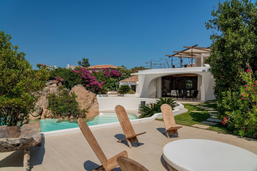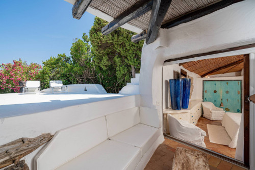 Esterni: Giardino, Angoli Romantici e Spazi di RelaxIl giardino della Villa è un altro elemento distintivo, con angoli particolari e romantici che si intrecciano con la vegetazione naturale della proprietà. Qui, salotti all'aperto sono stati studiati per creare zone intime, perfette per rilassarsi o per godersi un drink al tramonto, circondati dalla bellezza della natura sarda. La Villa è progettata per vivere all'interno e all'esterno in armonia, grazie a una perfetta fusione tra gli spazi interni ed esterni, che rendono questa proprietà un luogo ideale per il relax e la convivialità.