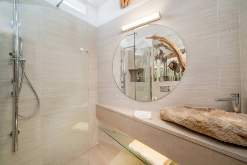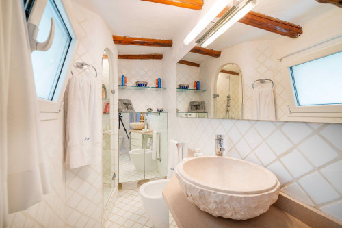 La Zona Notte: Privacy e ComfortDal soggiorno, una elegante scalinata conduce al piano superiore, dove si trovano due camere da letto con bagno in camera e una veranda privata che regala una vista mozzafiato sul porto turistico di Porto Cervo. Queste camere, spaziose e luminose, sono pensate per offrire il massimo della privacy e del comfort, grazie anche alla vista incantevole che caratterizza questa zona della Villa. Le altre due camere da letto si trovano in una zona adiacente al soggiorno, garantendo una disposizione pratica e funzionale degli spazi.