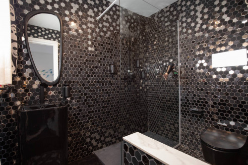 Bagno di Lusso: Il bagno è una vera e propria oasi di benessere, dotato di una doccia di alta gamma con materiali pregiati e getti d'acqua rilassanti. Il design moderno e l'attenzione ai dettagli lo rendono uno spazio di puro piacere e comfort.