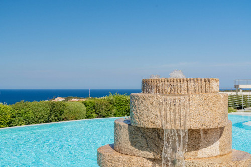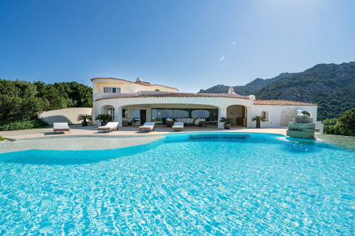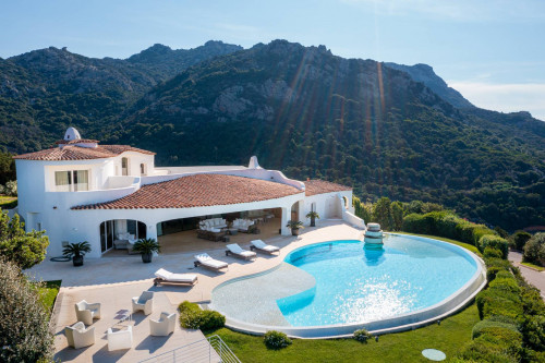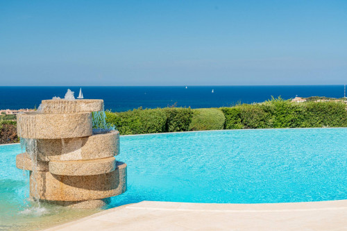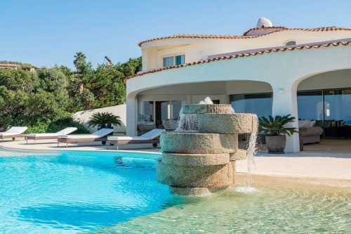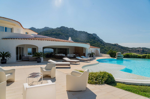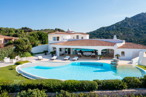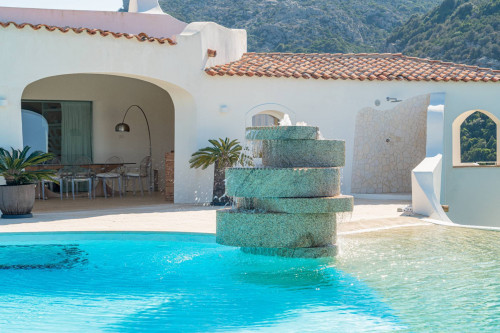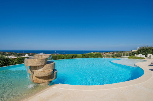 La piscina, simbolo di esclusività, si sviluppa in una forma spettacolare e offre un punto di vista privilegiato, dove gli ospiti possono godere di momenti di relax immersi nella bellezza incontaminata della Sardegna. Le terrazze circostanti, con ampie aree relax e solarium, permettono di vivere la Villa all'aria aperta, godendo della massima privacy e comfort.