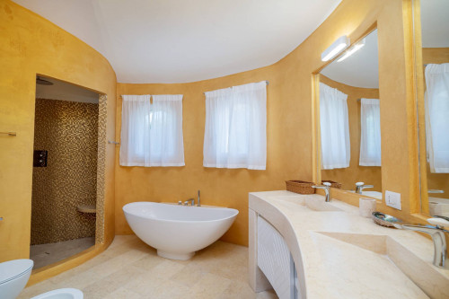 Questa Villa indipendente di nuova costruzione, una delle proprietà più esclusiva di Porto Cervo, unisce la raffinatezza del design moderno con la maestria dell'architetto Busiri Vici, creando un ambiente unico che incarna l'eleganza senza tempo della Costa Smeralda. La proprietà si sviluppa su due livelli autonomi, ognuno pensato per offrire il massimo del comfort e della privacy, ed è circondata da un panorama mozzafiato che spazia su Porto Cervo, la Marina, e il mare cristallino circostante.