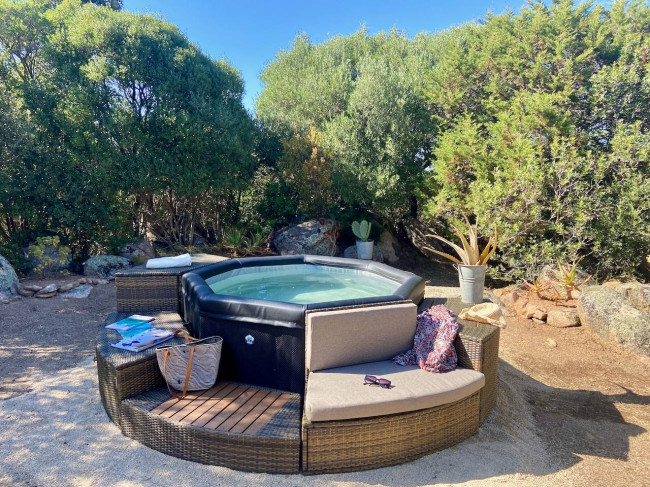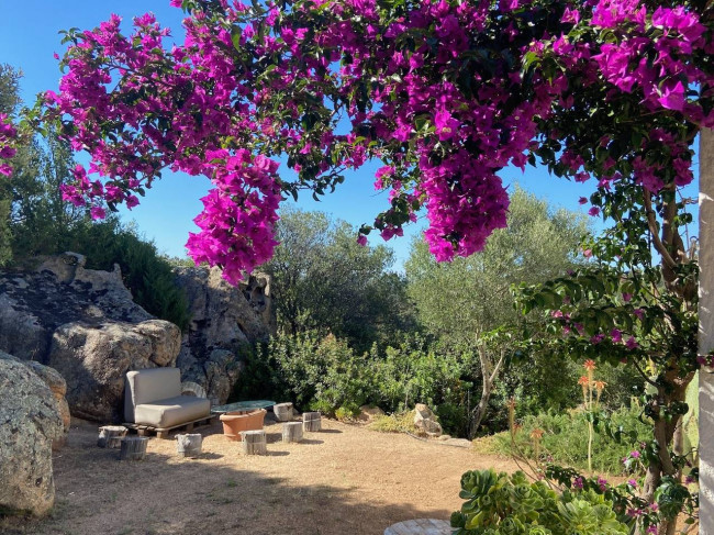Il giardino circostante, di circa 500 m² su un terreno totale di 30.000 m², è un paradiso naturale. Troverete angoli relax, zone pranzo all'aperto, due docce esterne, una jacuzzi e una piscina fuori terra (7,33 x 3,66 x 1,30). Tra le rocce e la vegetazione spontanea si nascondono percorsi e punti panoramici unici, ideali per contemplare la bellezza selvaggia della Gallura.