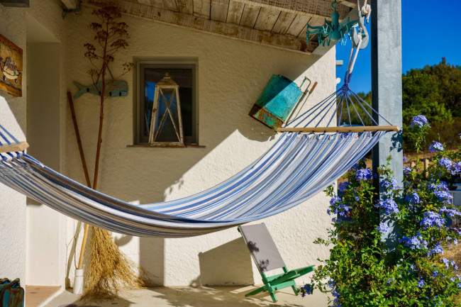 Nel terreno convivono piante autoctone e mediterranee, da ulivi secolari e sugheri a palme, aloe, lavanda, papaveri e bougainvillea. Per chi ama coltivare, la proprietà offre un orto di erbe aromatiche e alberi da frutto: limoni, aranci, fichi, melograni, pere, fragole, mandorli e ulivi per la produzione personale di olio.