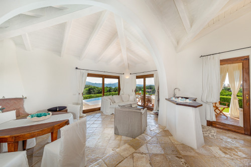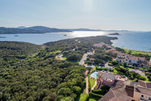 Questa caratteristica rende l'immobile una delle residenze più riservate e panoramiche dell'intero consorzio, con vedute suggestive che spaziano sul mare cristallino, fino ad abbracciare l'Arcipelago de La Maddalena e, sullo sfondo, la Corsica.