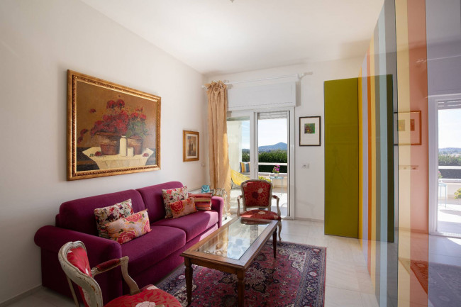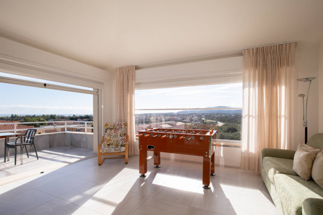 Un'ulteriore camera da letto, anch'essa con bagno privato, si apre su una grande veranda panoramica con vista mare, perfetta per ammirare i tramonti sulla costa e godere della massima privacy.