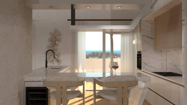 La zona giorno è ampia, luminosa, progettata per dialogare con l'esterno. Le vetrate si aprono verso le terrazze creando continuità tra interno ed esterno, tra casa e cielo.